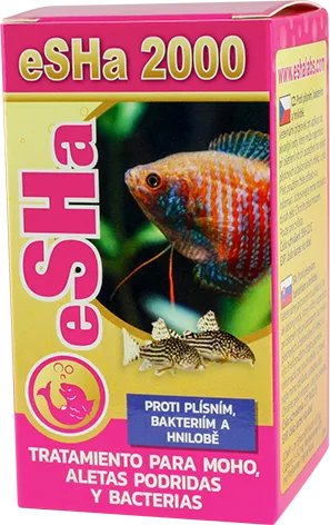 O eSHa 2000 já salvou muitos aquariófilos de sofrimentos desnecessários desde há mais de meio século. Foi desenvolvido para oferecer uma vasta gama de tratamentos e curar um número impressionante (mais de 18) de doenças e sintomas diferentes nos peixes. O eSHa 2000 é um tratamento de 3 dias e um produto potente e fácil de utilizar, com resultados rápidos e duradouros.