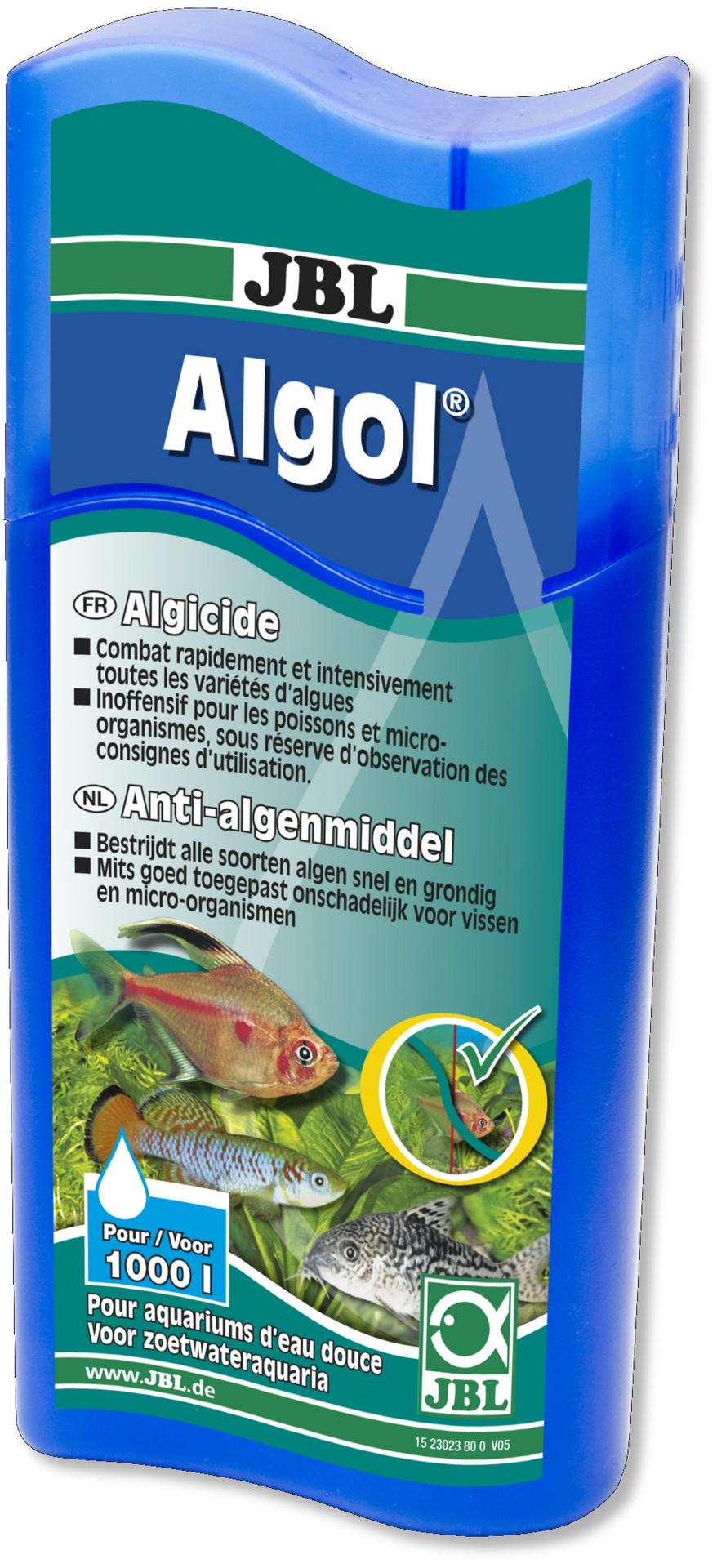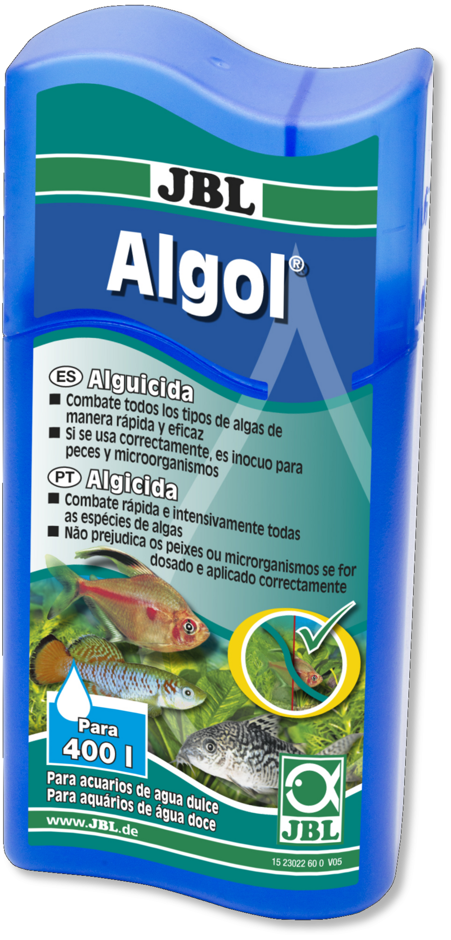 Utilização: 10 ml de JBL Algol para 40L de água. (Exemplo: 15 ml para um aquário de 60 l)