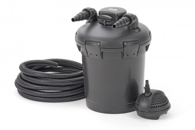 O kit completo de filtragem Pontec PondoPress Set 10000 garante água limpa e saudável em lagos até 10000L sem peixes ou lagos até 5000L com peixes.