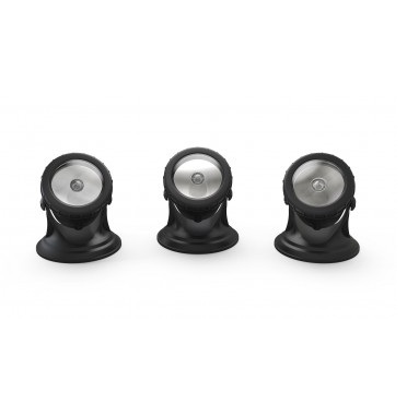 São adequados para uso acima e debaixo de água. Cada ponto de luz tem um diâmetro de 85 mm e pode ser girado em 120°.