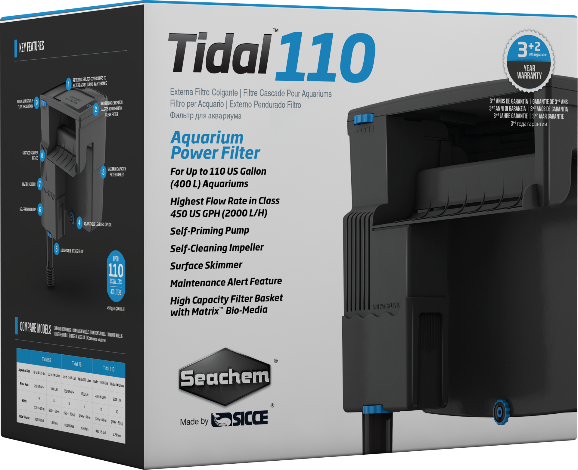 Os novos filtros Tidal estão entre os melhores filtros do mercado no formato cascata/mochila, proporcionando uma filtragem de alta qualidade, ao mesmo tempo que são muito fáceis de colocar em funcionamento e manter. Com uma série de características, incluindo bomba auto-ferrante, dupla entrada de água com skimmer de superfície, caudal ajustável, monitor de manutenção, impulsor auto-limpante e um cesto de filtros que comporta qualquer tipo de suporte filtrante — e em maior quantidade —, os filtros de potência Tidal™ foram concebidos para oferecer a melhor qualidade de água possível com a máxima versatilidade e facilidade de utilização.