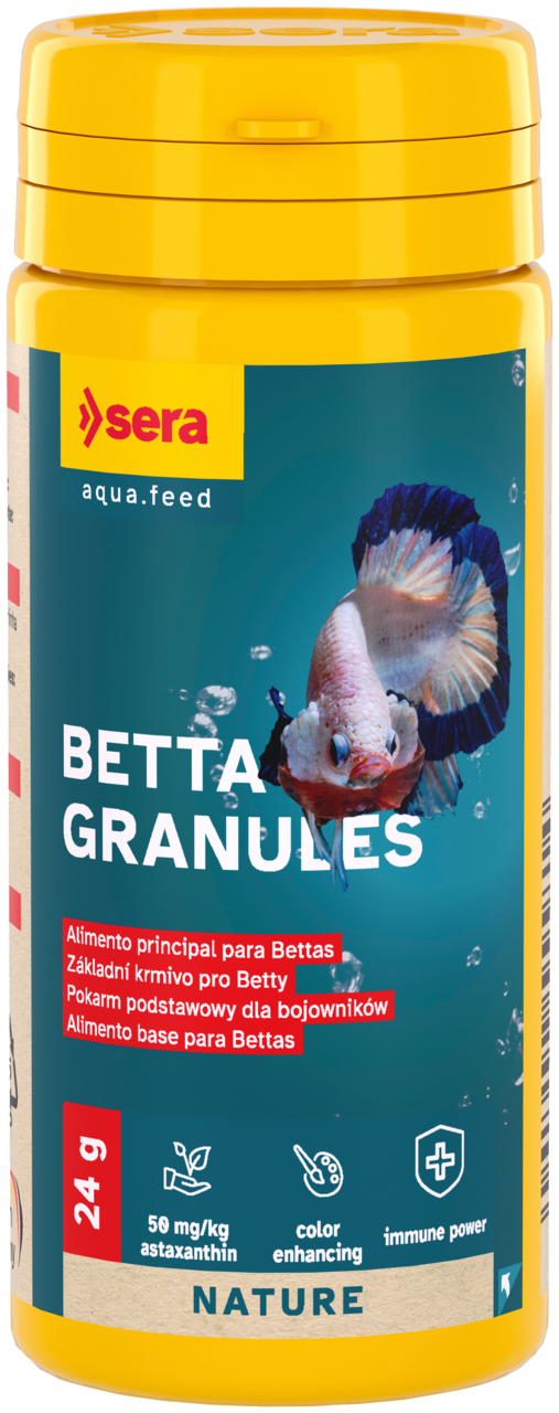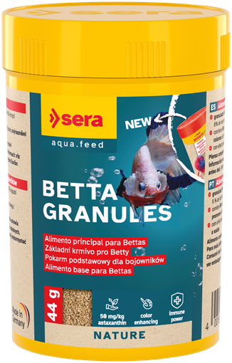 O sera Betta Granules (anteriormente Sera Betta Gran Nature) é um alimento especial para Bettas e outros anabantídeos, enriquecido com astaxantina natural que realça as cores.