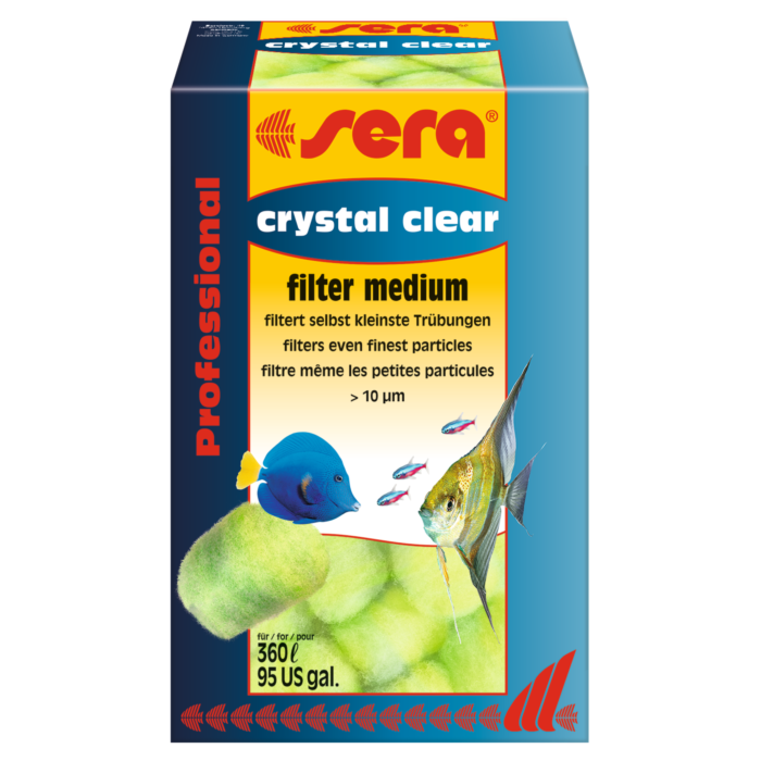 O Sera crystal clear Professional apresenta uma estrutura tridimensional de fibras inovadora e patenteada, estudada para eliminar as mais pequenas partículas a partir de 10 μm (p. ex. algas flutuantes, lodo) em pouco tempo.