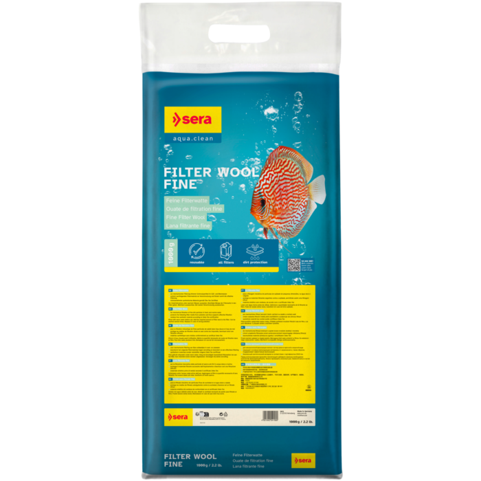 Para a pré-filtragem mecânica de partículas de maiores dimensões recomenda-se o uso de Sera Filter Wool Coarse - Lã filtrante espessa, antes da lã filtrante fina.