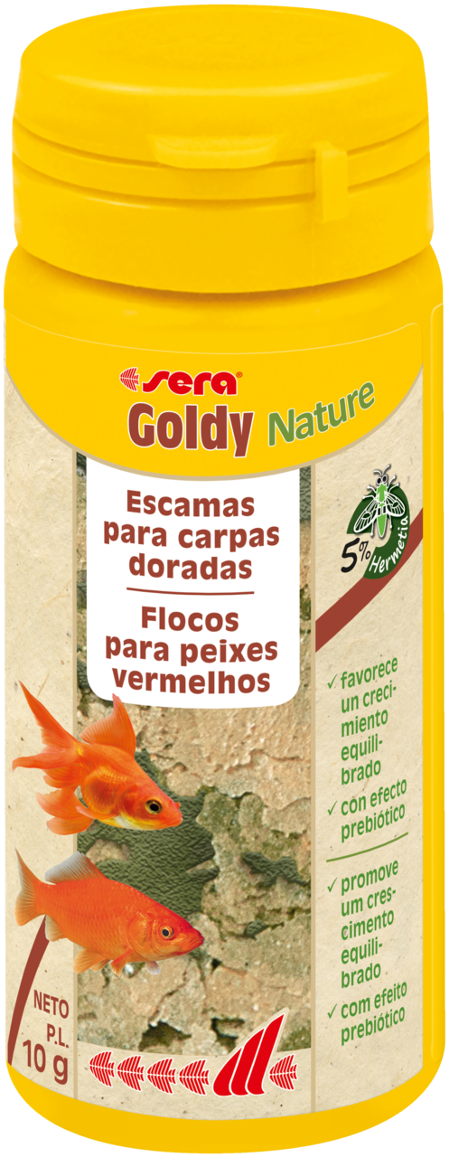 sera Goldy Nature é o alimento base para pequenos peixes vermelhos e as suas variedades de criação, tais como p. ex. Shubunkin, Cauda-de-Véu ou Sarasa e outros peixes de água fria, sem corantes nem conservantes.