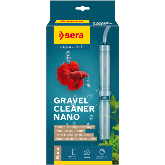 O modelo Nano é ideal para limpar aquários pequenos e áreas de difícil acesso. Remove de forma eficaz e segura os resíduos, restos de comida e depósitos de lodo no substrato.