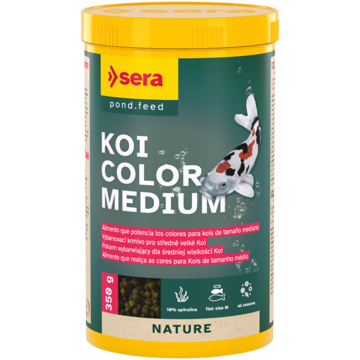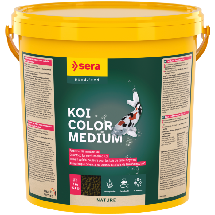 O Sera Koi Color Medium é adequado para uma alimentação completa durante todo o ano.