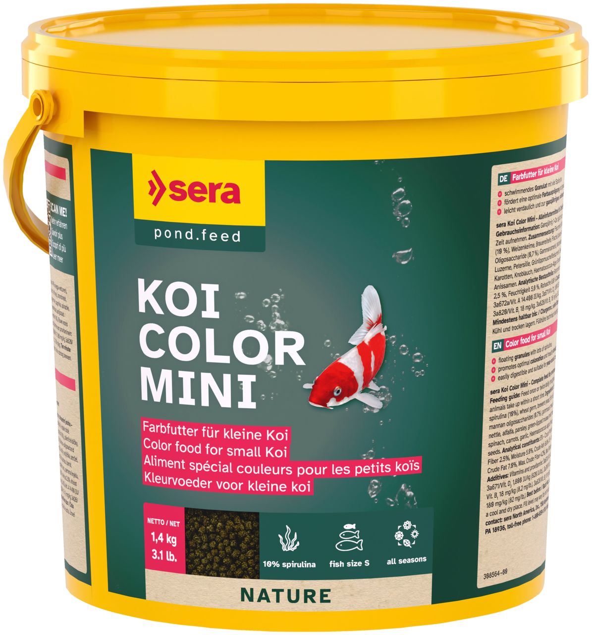 O Sera Koi Color Mini contém ingredientes de primeira qualidade, de fácil digestão e é adequado para uma alimentação completa durante todo o ano.