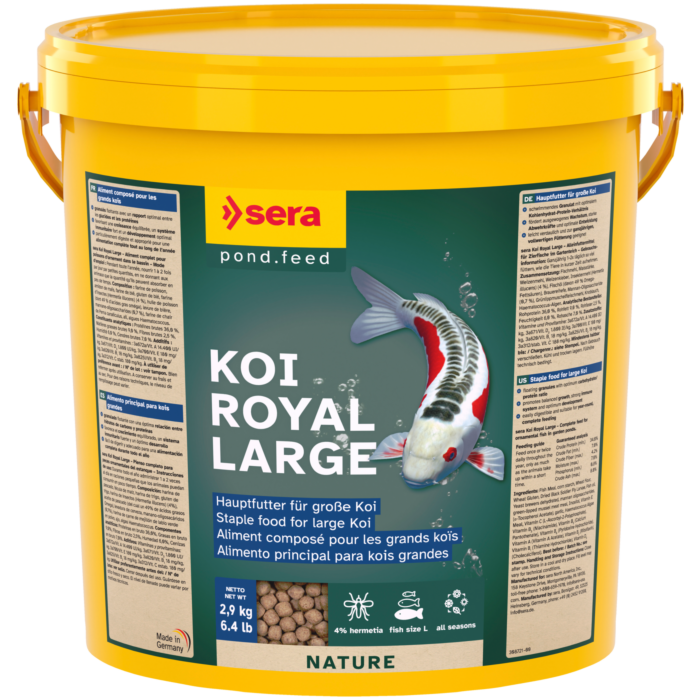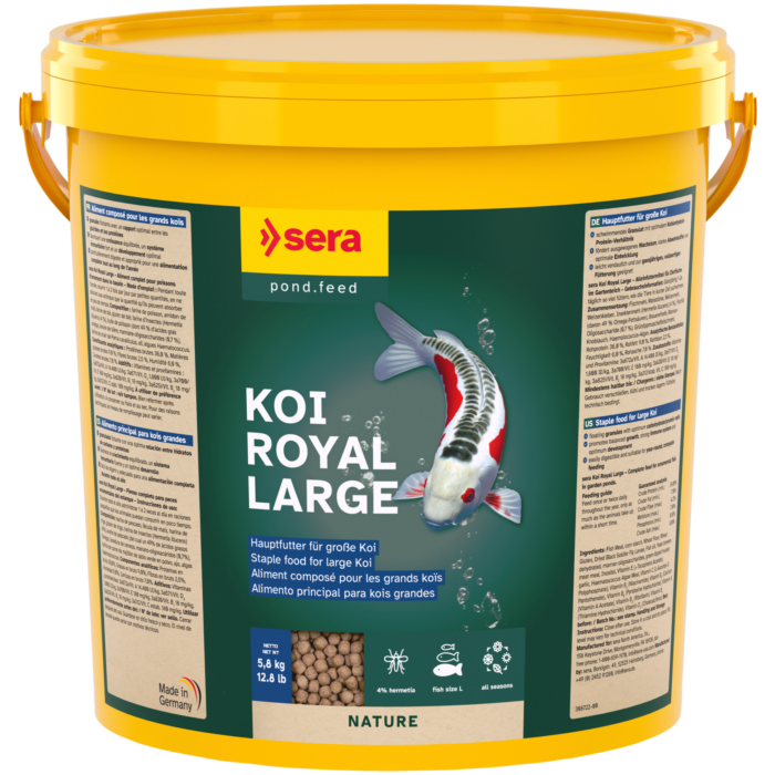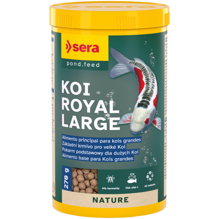 O Sera Koi Royal Large é um alimento especialmente formulado para carpas koi de tamanho grande (a partir de 25 cm).