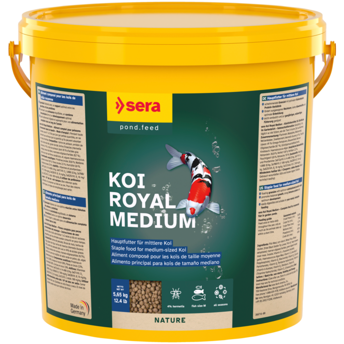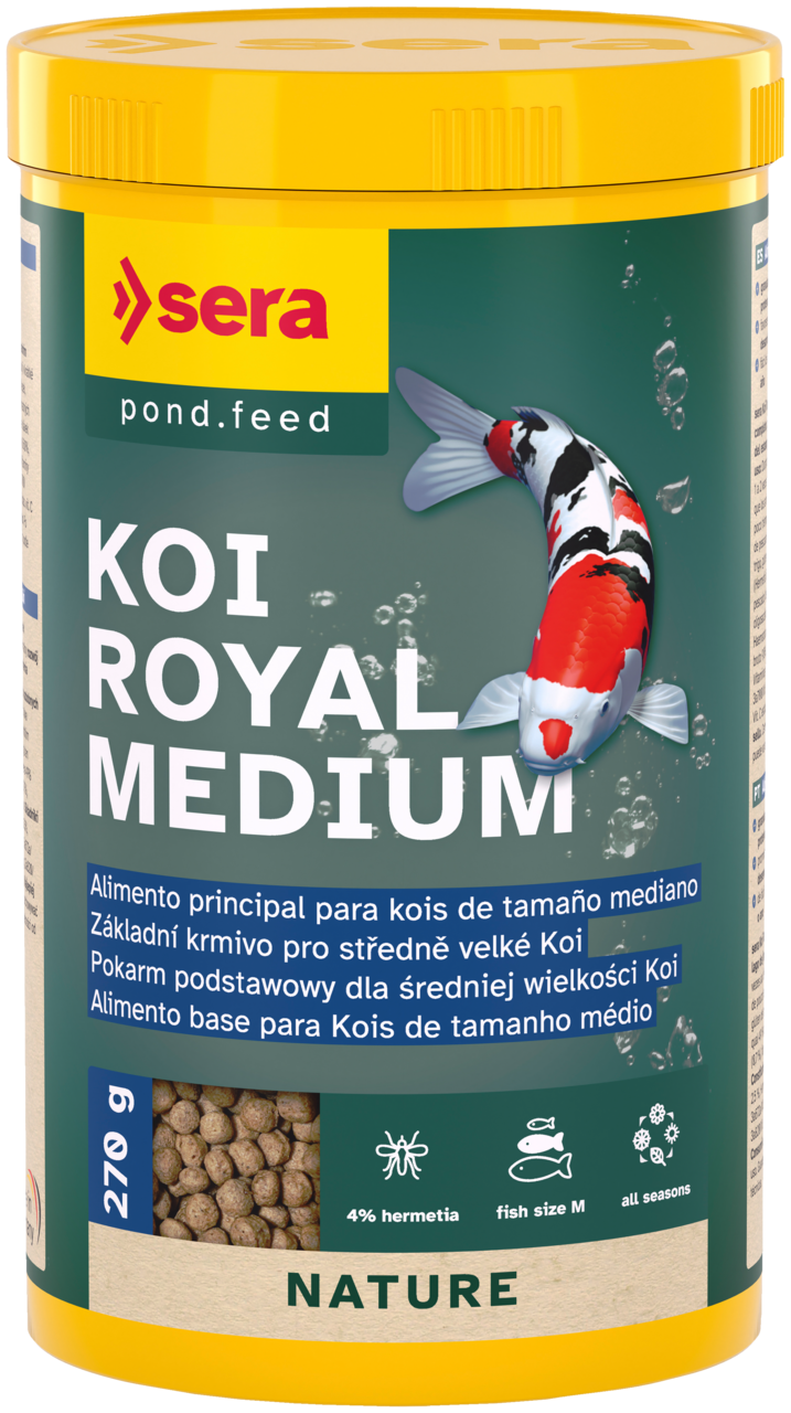 O Sera Koi Royal Medium é um alimento especialmente formulado para carpas koi de tamanho médio (entre 12 a 25 cm).