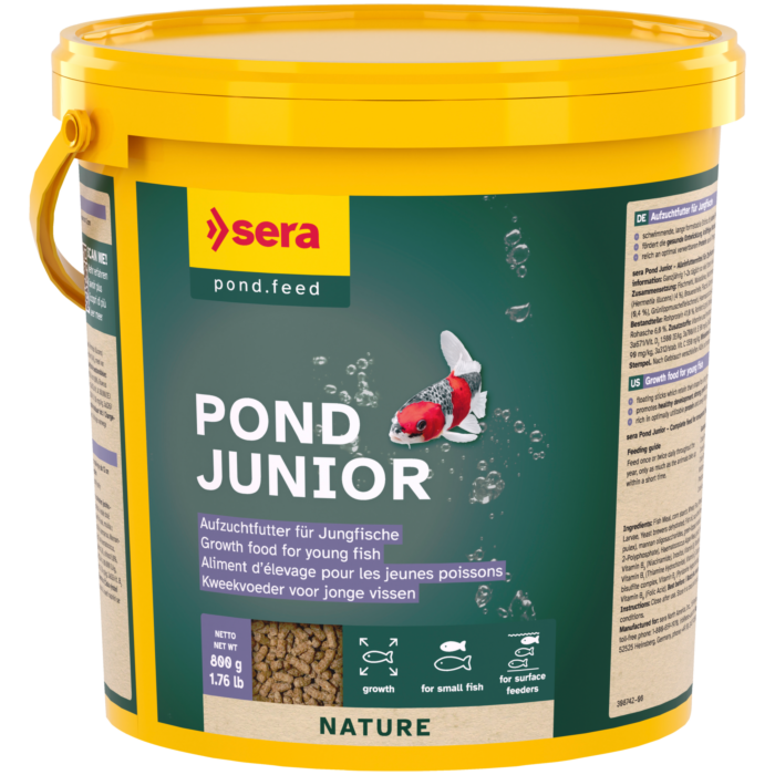 O Sera Pond Junior é composto por grânulos flutuantes, que mantêm a sua forma durante muito tempo. Foi especialmente formulado para peixes pequenos até 12 cm.