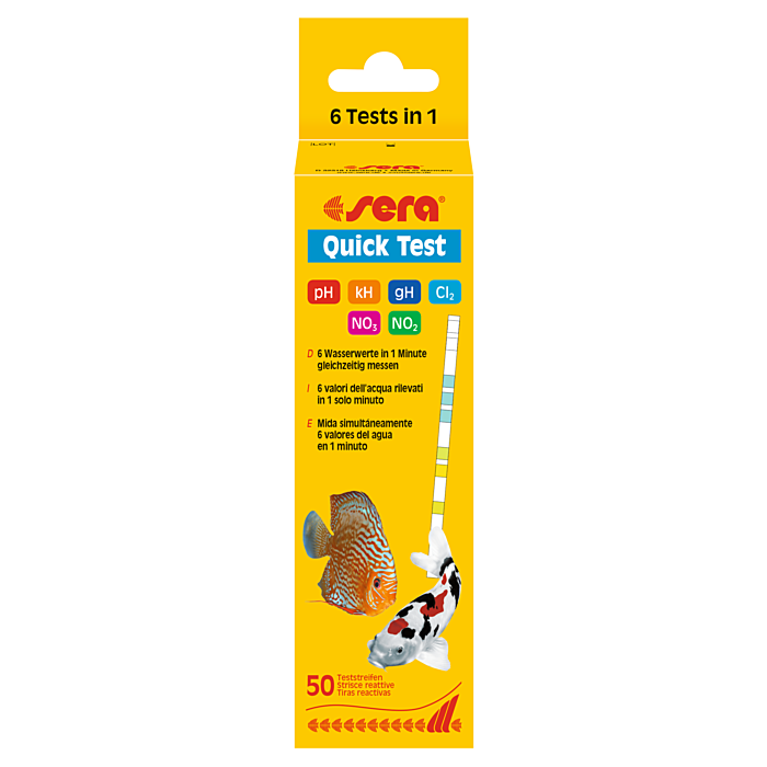 Cada tira do Sera Quick Test permite verificar os parâmetros mais importantes da água para controlo de rotina ou teste de segurança após modificação dos parâmetros químicos da água.