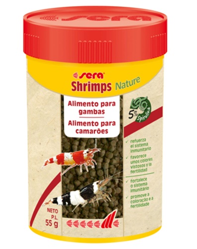 O Sera Shrimps Nature é um granulado que se afunda e mantém a sua forma na água.