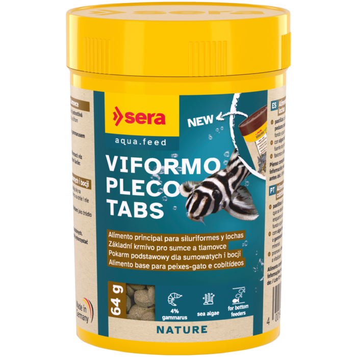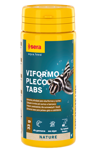 O Sera Viformo Pleco Tabs é uma alimento base completo em forma de pastilhas para todos os tipos de peixes de fundo, incluindo plecos, ancistrus peixes-gato, cobitídeos e siluriformes (ex. bótias, cobras kuhli, corydoras).