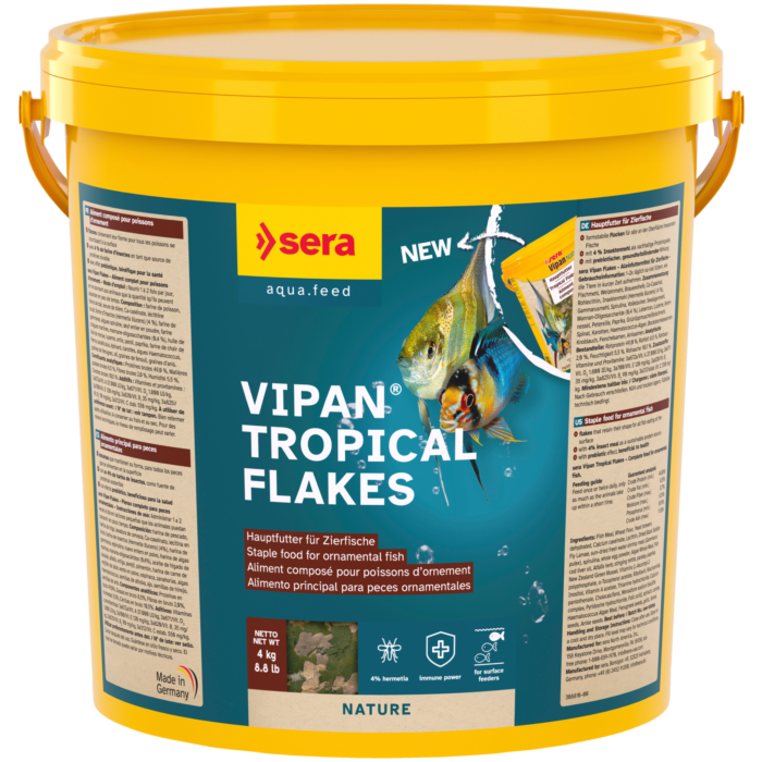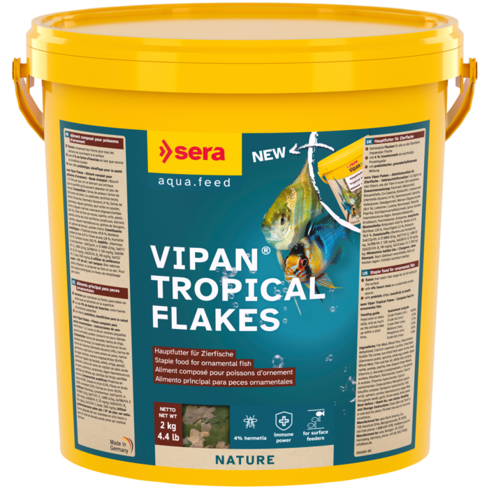 Sera Vipan Nature é um alimento base para todos os peixes tropicais que se alimentam preferencialmente à superfície, em forma de flocos flutuantes, sem corantes nem conservantes.
