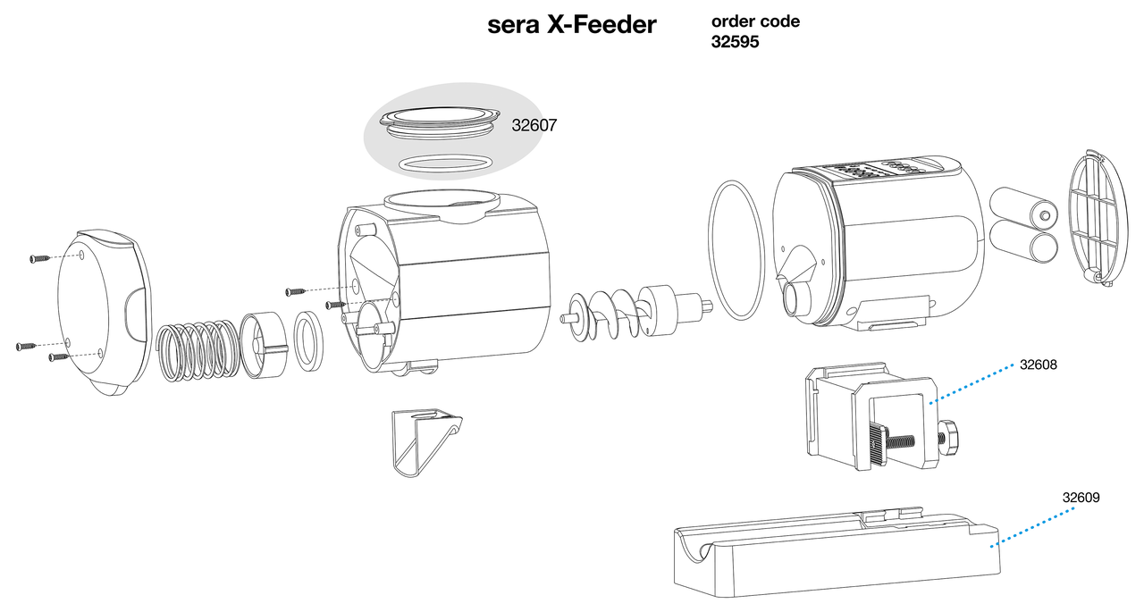 O alimentador automático Sera X-Feeder está equipado com um reservatório de 120 ml, adequado para casos de ausência prolongada, e foi concebido para dispensar alimentos em flocos, granulados e pastilhas de diferentes tamanhos.